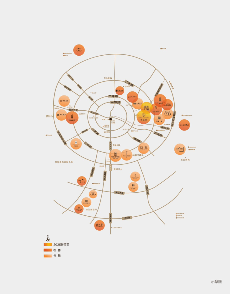 双TOD交通枢纽:紧邻二环路、中环路、成洛大道、蜀都大道等4大城市主干道;2/4/7/8号线4大地铁线路交织;近临槐树店站、迎晖路站、万年场站等3地铁站,万象通达;