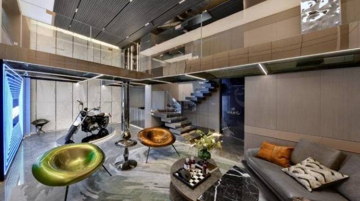 两叠下叠225㎡:独门院落,前庭可直接花园入户,与客厅相连,后院与老人房连通,老人独立使用。