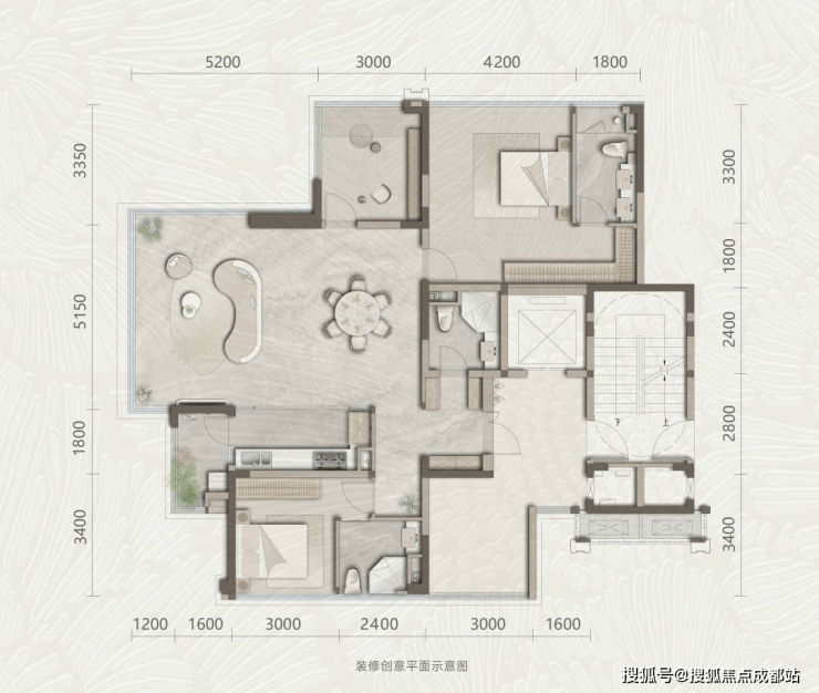 此户型为3室2厅3卫的设计格局,得房率惊人地高达120%。其超过40㎡的创新边厅,为家庭营造出亲密无间的生活场景。独特的270°全景舱观景视野,让居住者仿佛置身于美妙的自然画卷之中。主卧更是配备了步入式衣帽间以及度假酒店式的休憩空间,充分满足了改善型家庭对于高品质生活的追求。 215㎡沄璟户型